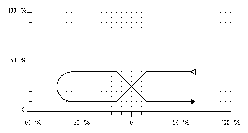 Donner le " in " quand le CV se trouve sur une ligne horizontale à ^40 et qu'il n'a pas encore atteint >70. A >15 on effectue un angle de 45 vers le bas. Le CV part dans une ligne droite vers le bas jusqu'à ^10. Là on fait un autre angle de 45 pour que le CV se retrouve sur une ligne horizontale à ^10 jusqu'à <60. Là il effectue un demi-cercle vers le haut pour se retrouver sur une horizontale à ^40. La deuxième diagonale vers le bas doit se faire de manière à ce que le croisement se trouve au centre de la fenêtre à ^25. Donner le " out " quand le CV se trouve de nouveau à >70.