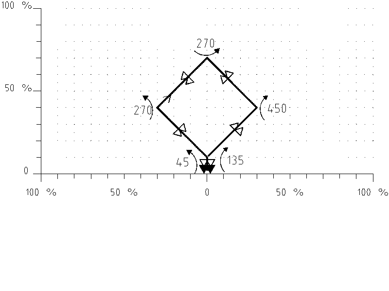 Donner le " in " quand le CV se trouve debout au centre de la fenêtre. Il faut effectuer un losange avec les quatre côtés égaux et des angles de 90 . Le point le plus bas du losange se trouvant à ^10. Faire des pivots dans les trois coins supérieurs. Le centre du CV devrait se trouver " cloué " pendant qu'il tourne. Effectuer le losange avec le CV en marche avant. Donner le " out " après l'atterrissage du CV au centre de la fenêtre.